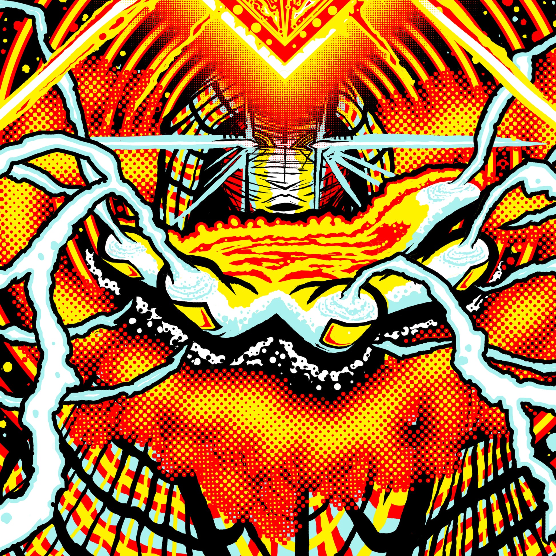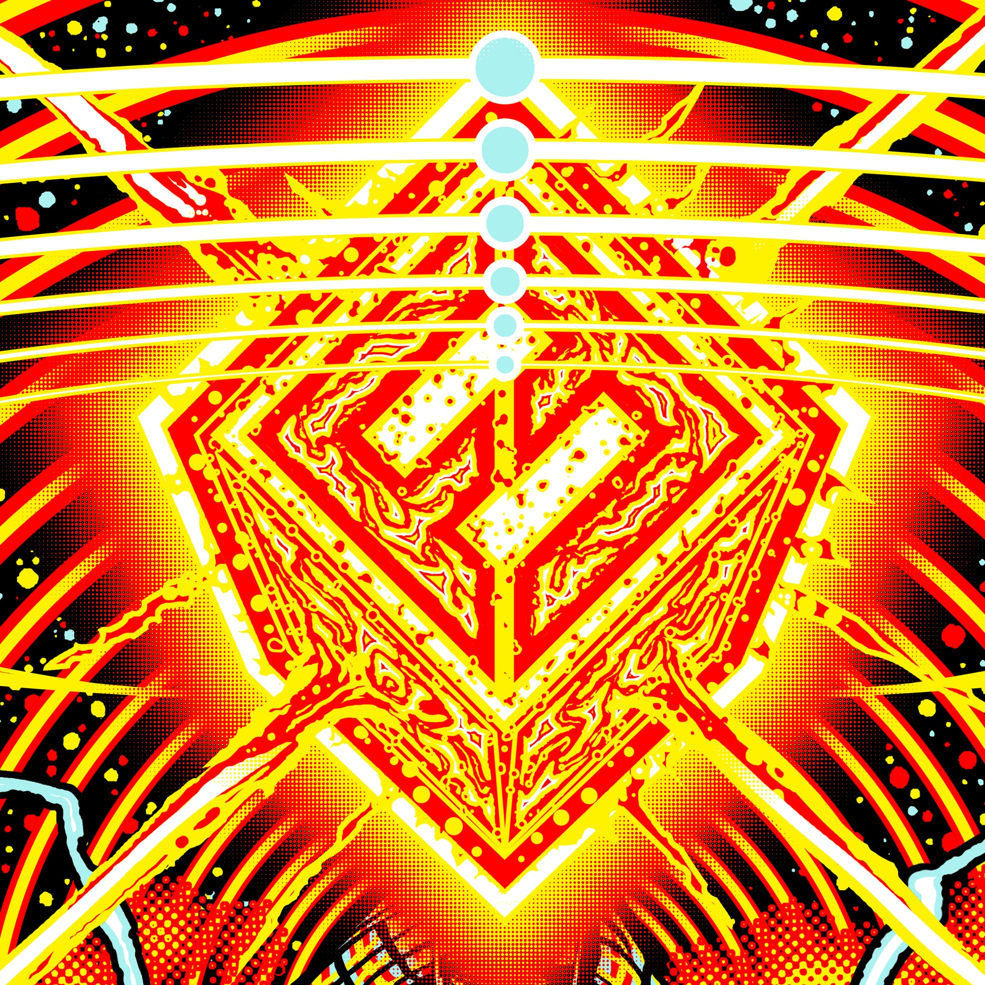 Inspired by the song "The Sky is a Neighborhood"...depicting a celestial flannel clad hooded grunge god electrifying a solar energy of the band along which 6 planets (each band member) align around like the 6 strings of a guitar, to create the sonic force that are the Foo Fighters.